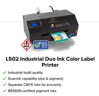 Dye Ink is vibrant and colorful, perfect for retail products like coffee, candles, and snacks. Pigment Ink is durable, waterproof, and UV resistant, making it ideal for chemicals, oils, and outdoor products. The Afinia L502 is unique because it can swap between both.
