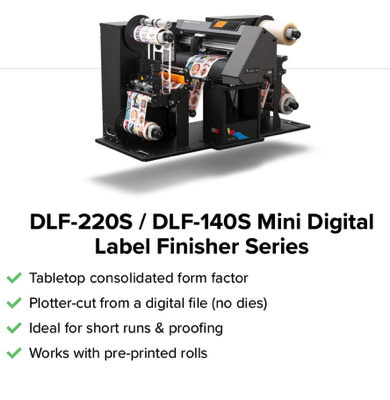 Compact plotter-cutter. Laminate and cut labels to any shape.